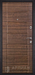 Надежная входная белая дверь с качественной фурнитурой и внутренней отделкой цвета орех №3