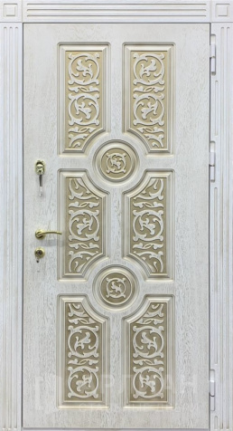 Светлая входная дверь классика с декором №11