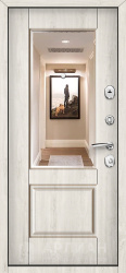 Белая дверь входная металлическая с зеркалом внутри и усиленными петлями №76