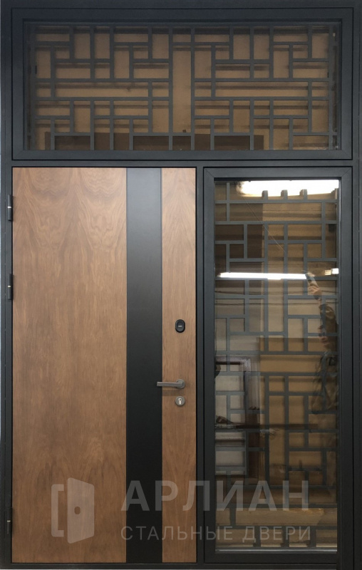 Металлическая входная дверь в коттедж с верхней фрамугой №10