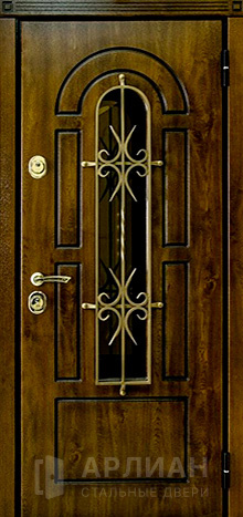 Металлическая дверь МДФ шпон со стеклом и ковкой №19