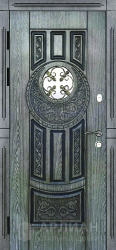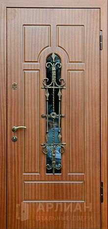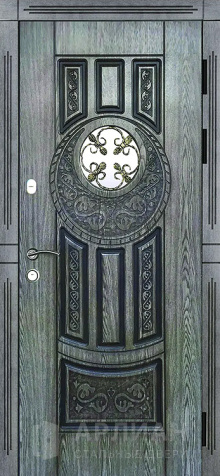 Утепленная входная дверь для коттеджа с кованными элементами №28