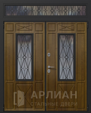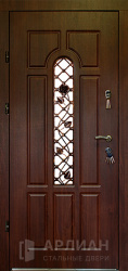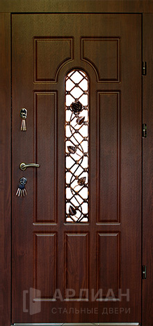 Металлическая дверь в частный дом со стеклом и решеткой №36