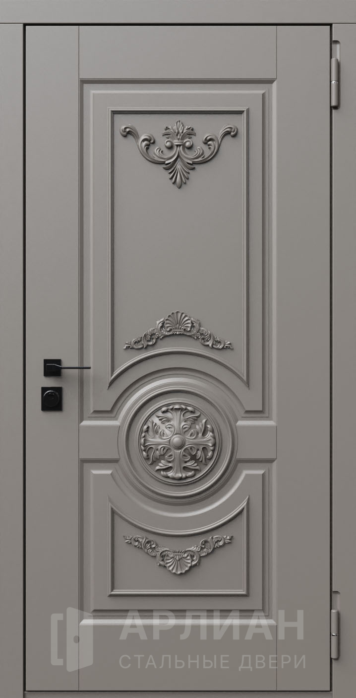 Фото «Входная серая дверь для коттеджа с отделкой патиной №780»