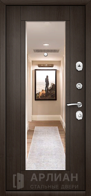 Дверь темная с минеральным утеплителем и зеркалом №3