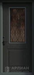 Входная арочная дверь с витражом и решеткой №419
