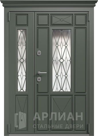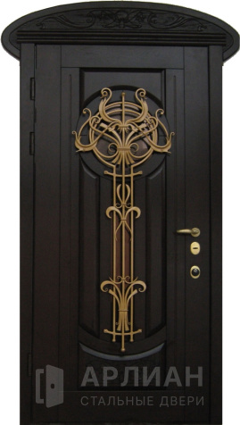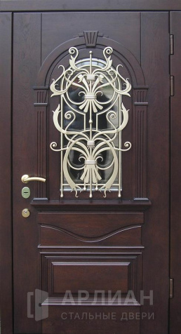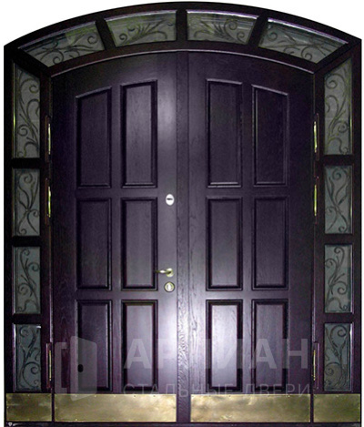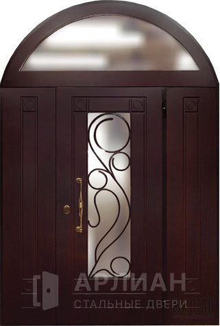 Фото «Высокая арочная дверь с фрамугой и кованой решеткой №12»
