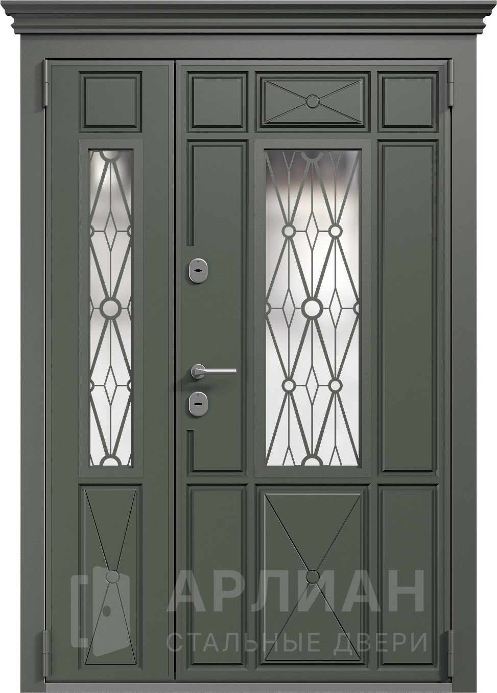 Стальная входная дверь с ковкой и решеткой в полной комплектации №52