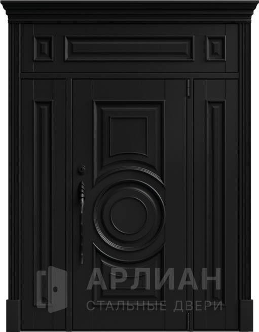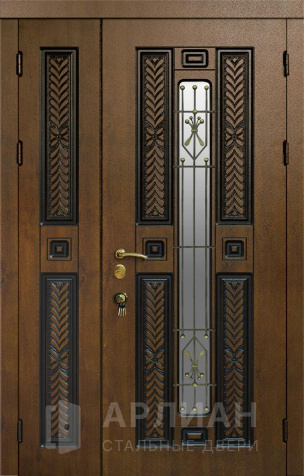 Трехстворчатая парадная входная дверь с терморазрывом и ковкой №34