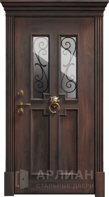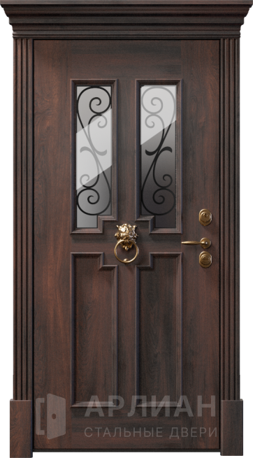 Фото №2 «Входная дверь массив дуба в коттедж со стеклом и ковкой №19»