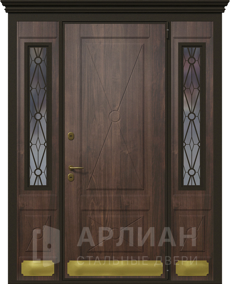 Входная дверь арочная в квартиру с коричневой панелью №62