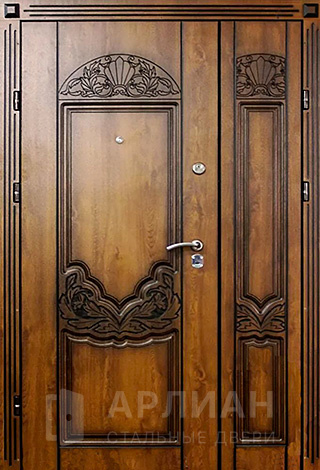 Металлическая входная дверь в коттедж с верхней фрамугой №10