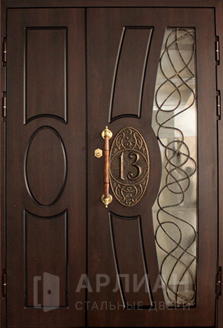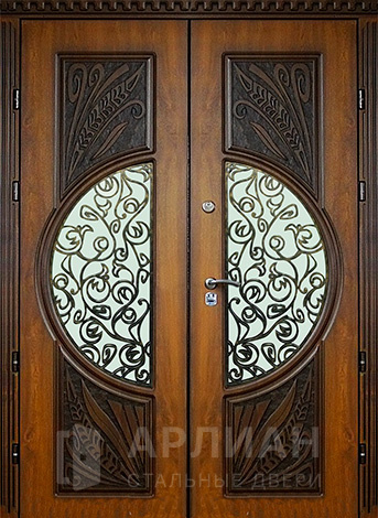 Стальная входная дверь из массива для загородного коттеджа усиленная №449