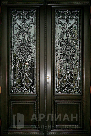 Трехстворчатая парадная входная дверь с терморазрывом и ковкой №34