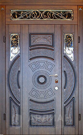 Утепленная входная дверь для коттеджа с кованными элементами №28