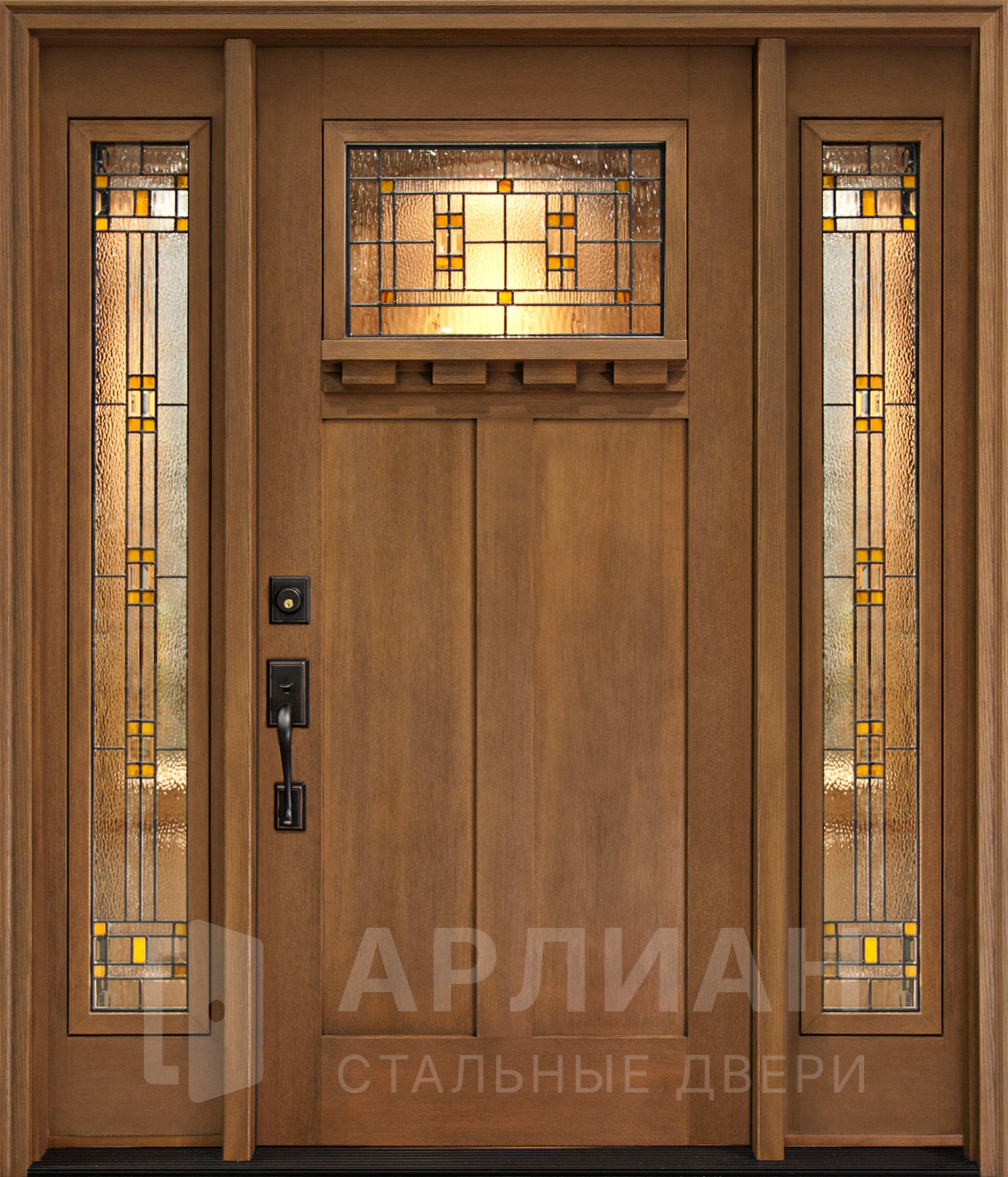Стальная дверь со стеклом усиленная отделка винорит №108