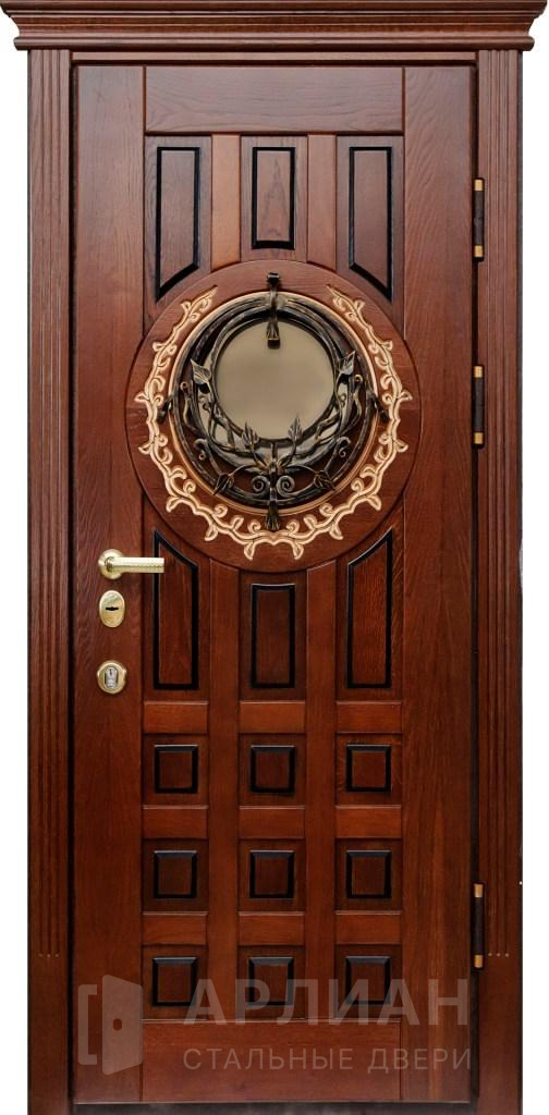 Двухстворчатая входная дверь со стеклом и ковкой №9