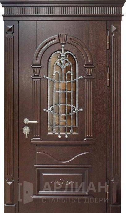 Дверь полуторная металлическая со стеклом и художественной ковкой №411