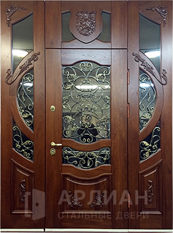 Металлическая входная дверь в коттедж с верхней фрамугой №10