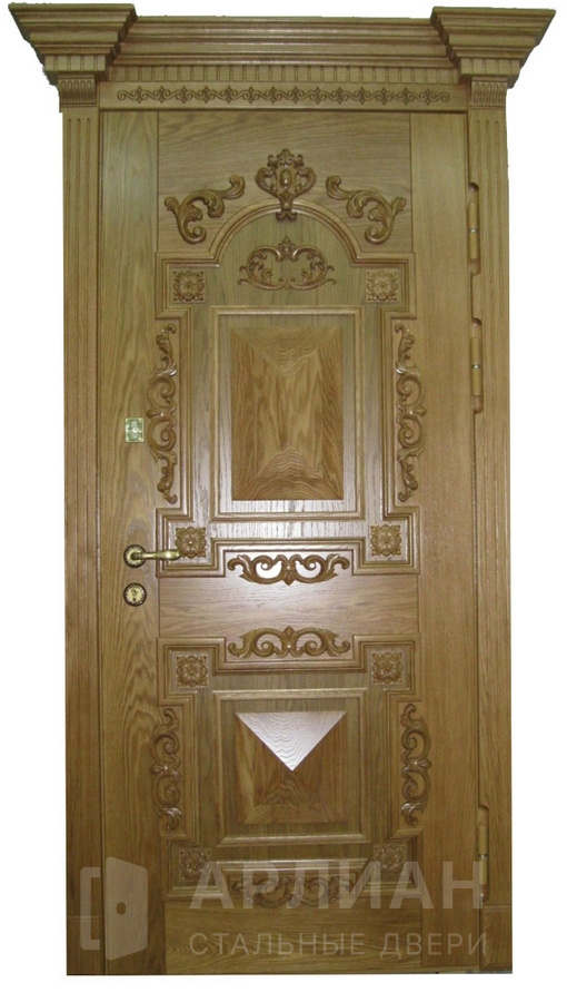 Входная парадная дверь с ковкой отделка натуральным деревом №79