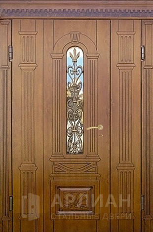 Входная металлическая дверь массив дуба со стеклом и ковкой №119