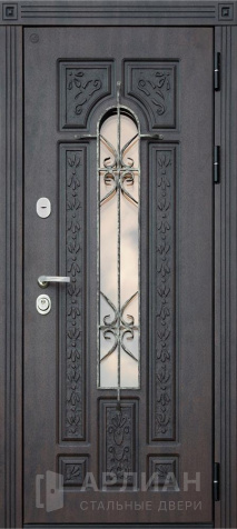 Металлическая входная дверь в коттедж с верхней фрамугой №10