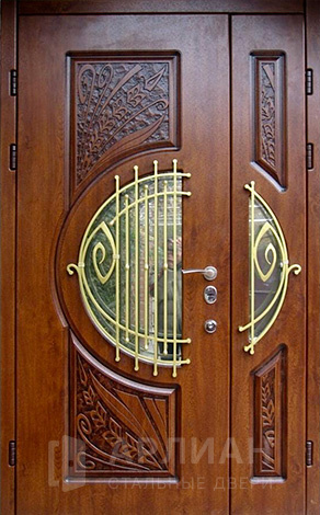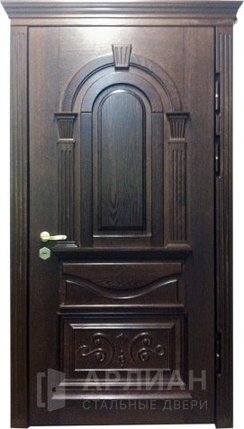Фото «Отделка массивом парадная дверь полуторная металлическая №82»
